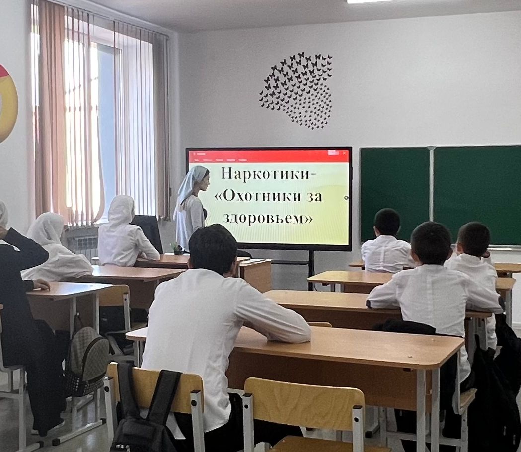11.04.20234 апреля с учащимися 7 класса Саидова Русалина Саламбековна (классный руководитель) провела профилактическую беседу о вреде потребления наркотиков на тему: «Наркотики – охотники за здоровьем».Русалина Саламбековна напомнила о том, что наркомания это заболевание, которое носит хронический характер и, к сожалению, неизлечимо.В ходе беседы также была затронута немаловажная тема о пропаганде спорта и здорового образа жизни среды молодых людей.В конце урока классный руководитель раздала учащимся буклеты о профилактике и предотвращении наркомании «Цени свою жизнь».
